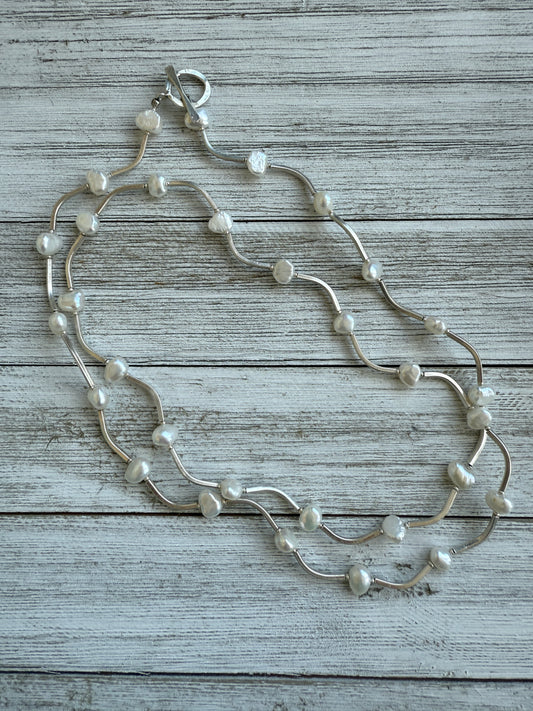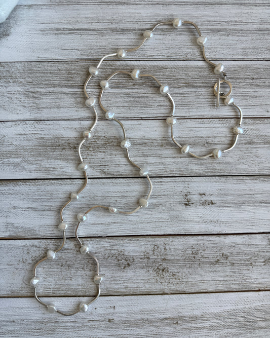 Peruvian pink Opal necklace with fine silver spacers and toggle. Handmade and OOAK by ladeDAH! Jewelry.