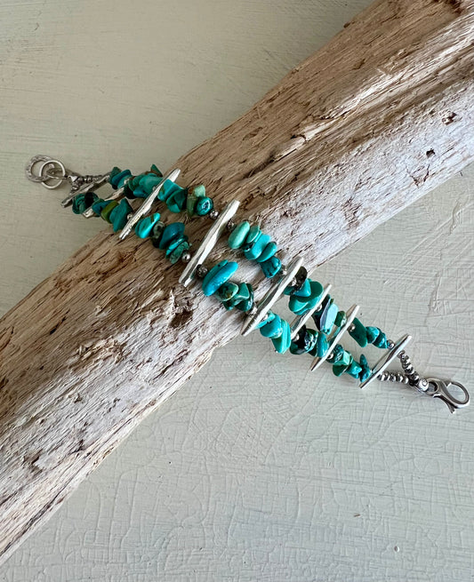 Turquoise and fine silver ladder bracelet. Fits 7-8” wrists.