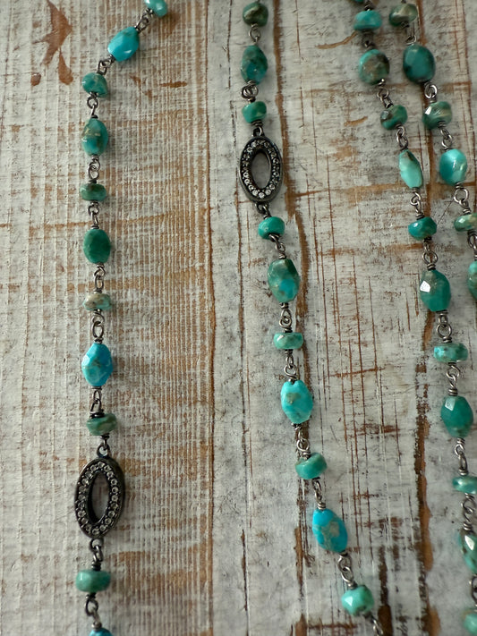 Wire wrapped turquoise chain necklace with topaz accents and toggle clasp. 35”