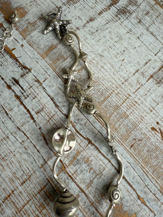 Two strand seashell and sealife fine silver necklace. Adjustable 17-30”.