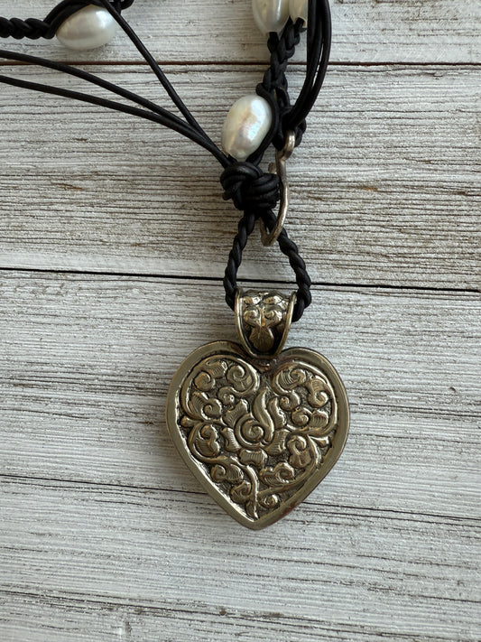 Spiny oyster and turquoise heart necklace. 17.5-19.5”.