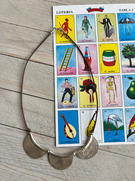 A rustic bronze shield hangs from an oxidized sterling chain. A sterling heart and pyrite add interest. Oxidized sterling lobster clasp allows you to change pendants out and adjust length. 19”