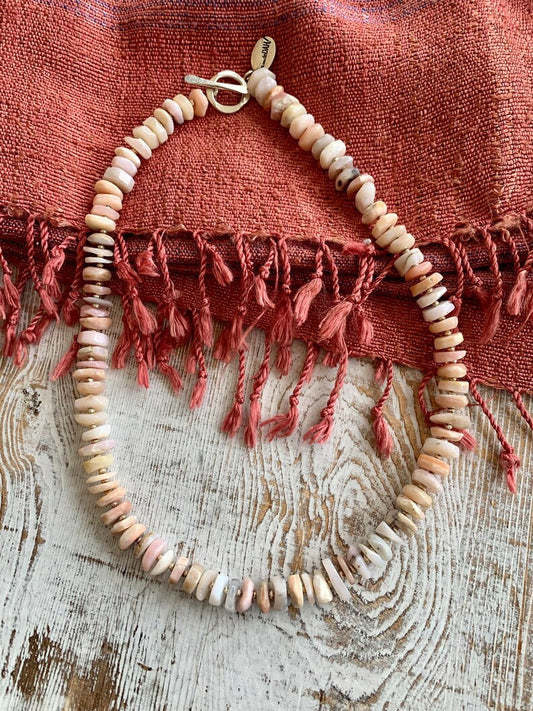 Peruvian pink Opal necklace with fine silver spacers and toggle. Handmade and OOAK by ladeDAH! Jewelry.
