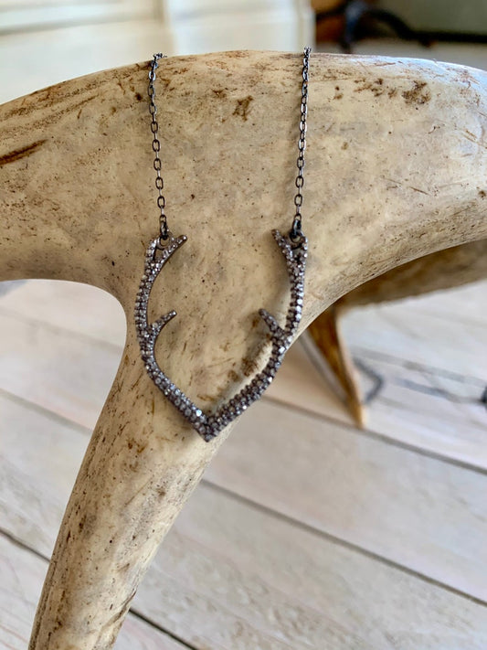 Diamond pavé antler on delicate antiqued silver chain. 15.75-16.75” long. By ladeDAH! Jewelry.