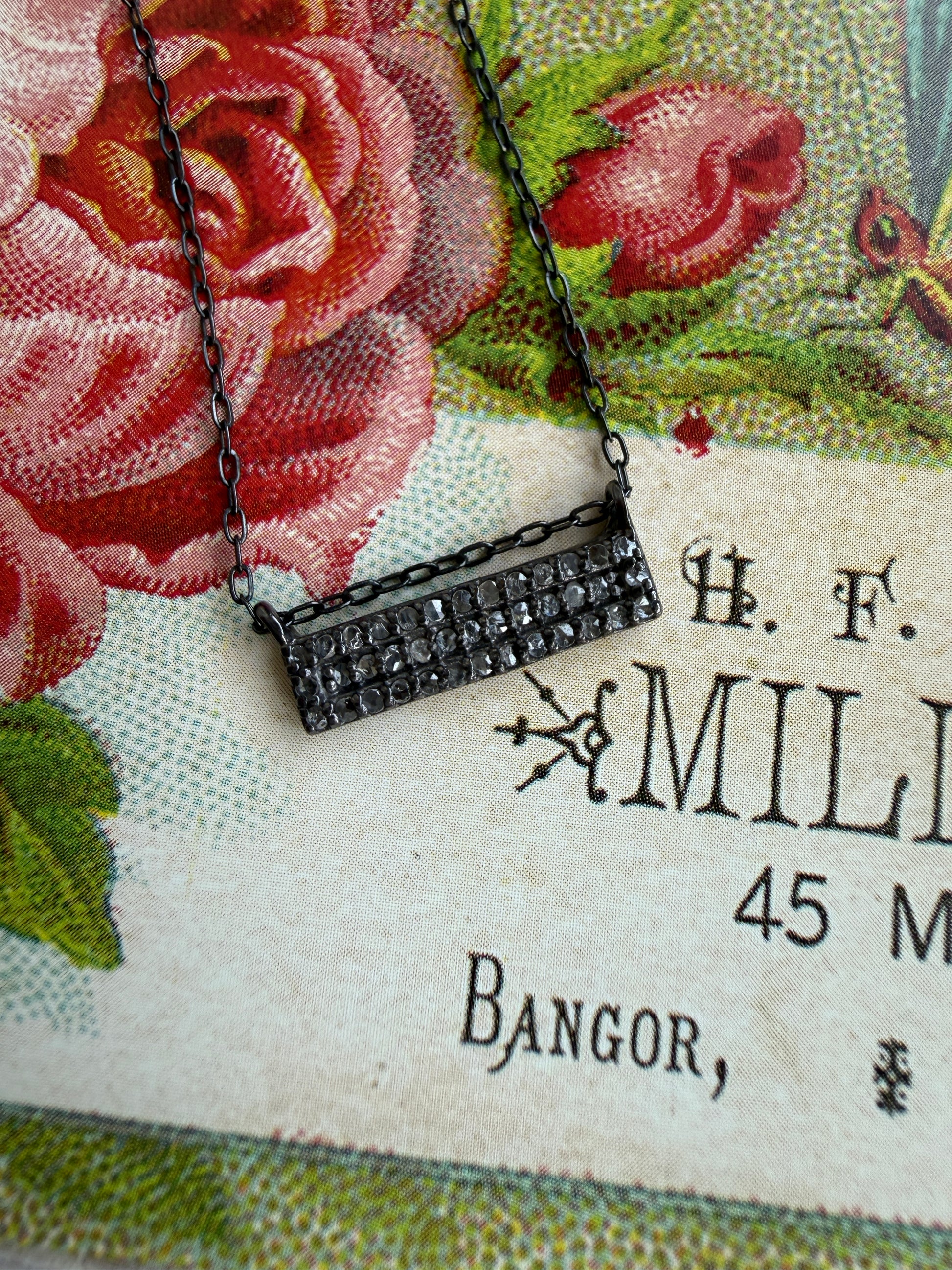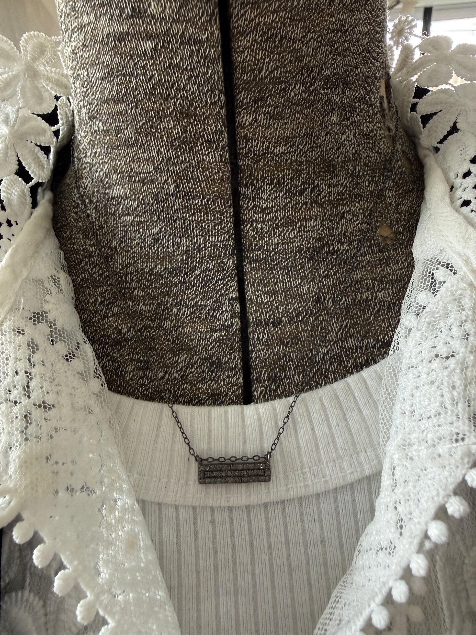 Pavé diamond bar delicate necklace. 14.5-16.75”.