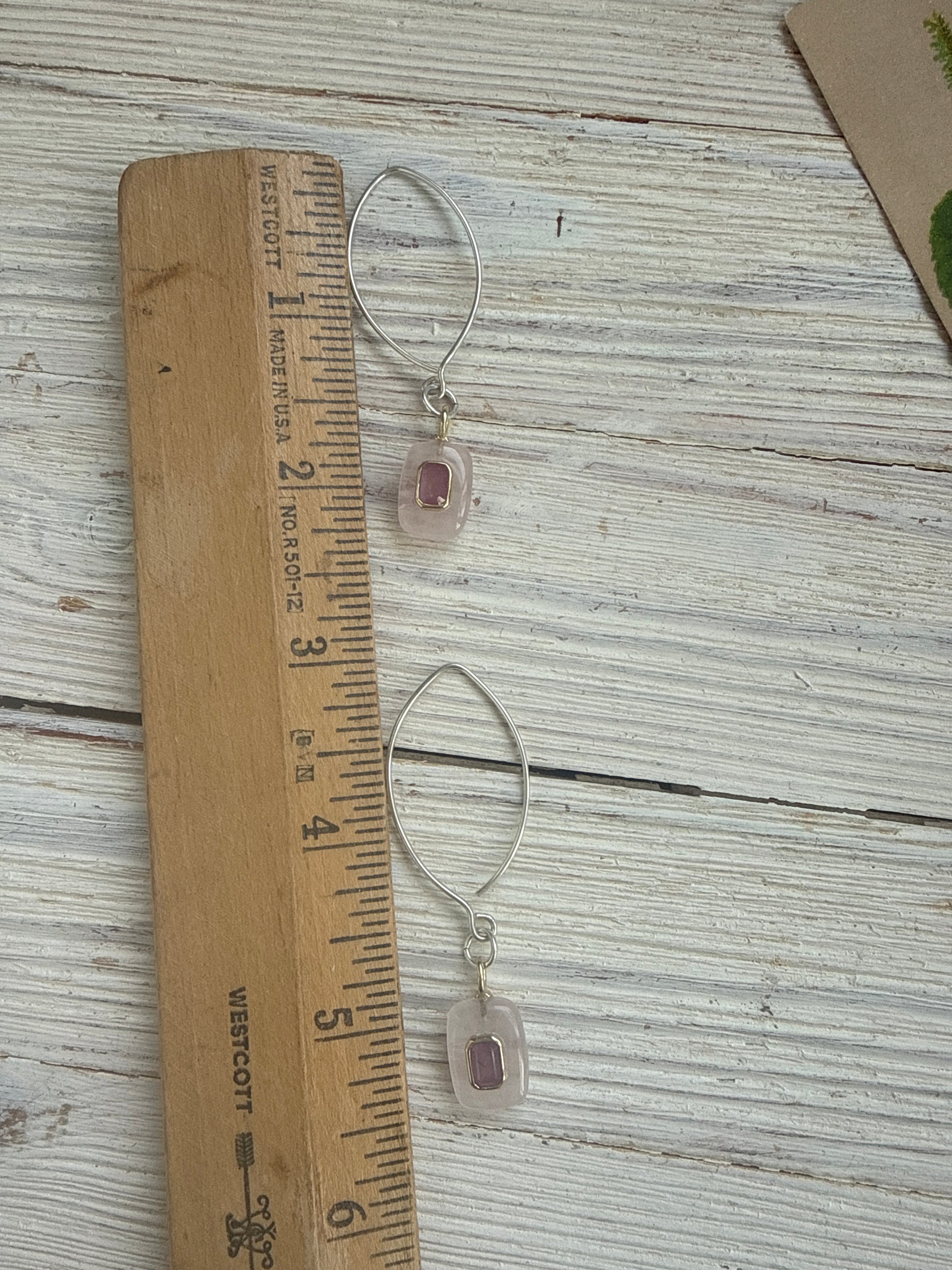 Rose quartz with pink topaz inlay on sterling earrings.
